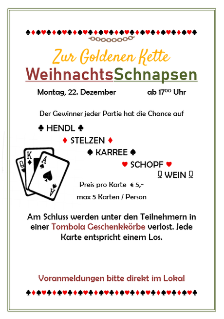 Egal wo Du bist: Mit der „goldenen Kette“ für WhatsApp verpasst Du ab sofort keine unserer Neuigkeiten mehr. Wir schicken Dir unser tägliches Mittagsangebot, Veranstaltungsankündigungen und News nämlich Direkt auf Dein Smartphone.