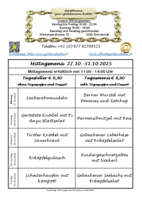 Unser aktueller Wochenmenüplan